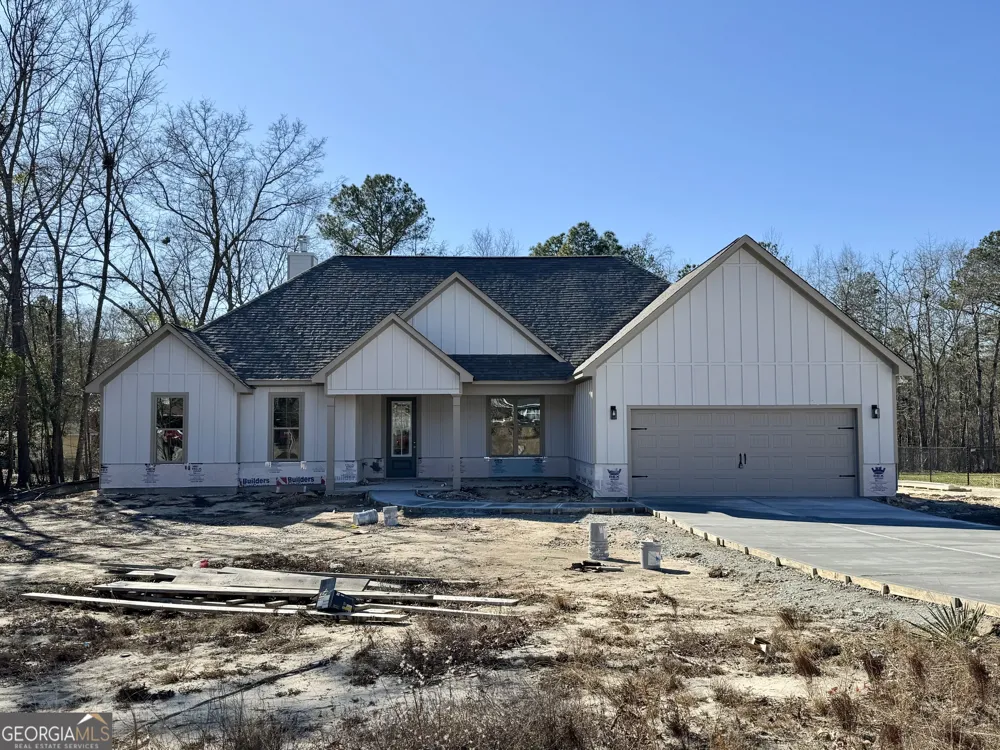 New build- under construction. Check out the massive covered back patio on this Open concept 4 bedrooms, 2 bathrooms home with 2 car garage. Spacious ranch home in an established neighborhood on a large lot. SPC "wood" plank flooring is durable, waterproof and scratch resistant. Walk in to the foyer that leads to huge family room with wood burning fireplace, open to large kitchen with shaker cabinets, island, granite counter tops and stainless steel appliances, formal dining room could be home office or playroom. Huge primary suite with spacious walk-in closet, en suite bathroom with separate double vanities, separate shower and garden tub. 3 additional bedrooms and full bathroom with double vanity. Hardi board concrete siding and Architectural shingles. Home is Under Construction - Expected completion in January. Photos are of this same plan previously built.